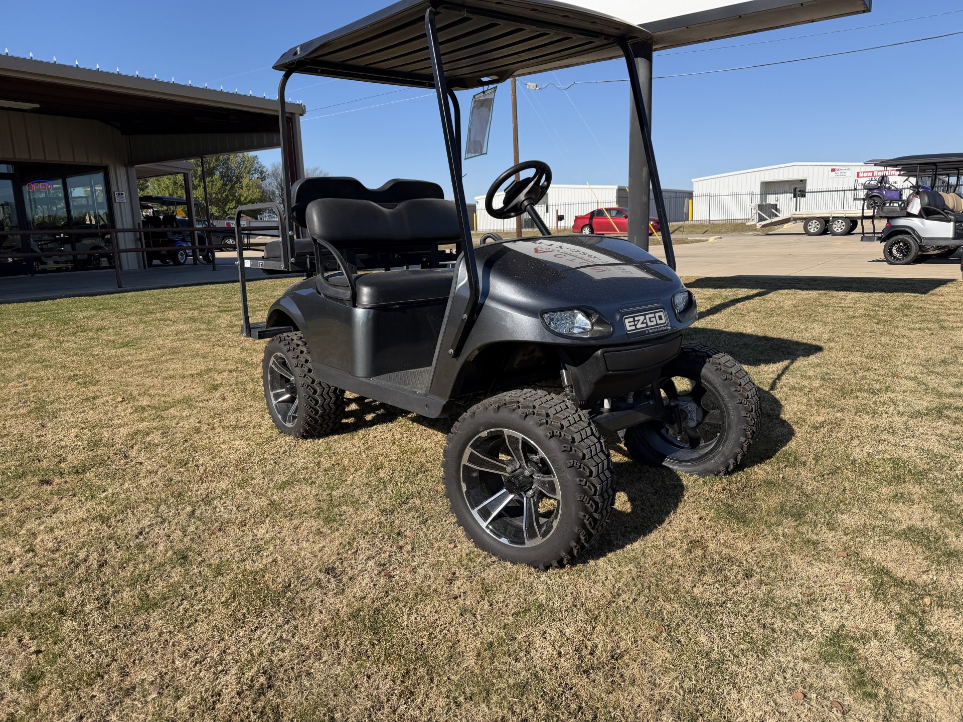 Discover the perfect blend of style, efficiency, and fun with this 2019 E-Z-GO TXT Golf Cart. Whether you’re cruising through the neighborhood, hitting the fairways, or exploring your favorite outdoor spaces, this golf cart is designed to deliver an exceptional ride every time. Under the sleek exterior, the E-Z-GO TXT is powered by a state-of-the-art Lithium-Ion battery, offering superior energy efficiency and faster charging times compared to traditional lead-acid batteries. Say goodbye to range anxiety and hello to extended adventures with this eco-friendly power source that keeps you moving longer. The 2019 E-Z-GO TXT seats up to four passengers comfortably, making it perfect for family outings or a friendly golf game with a group. The spacious seating arrangement provides ample legroom and comfort, ensuring everyone enjoys the ride as much as you do. Designed with both functionality and aesthetics in mind, this golf cart boasts a stylish exterior that will turn heads wherever you go. Its durable construction ensures that it can handle everything from leisurely drives to more rugged terrain with ease. Experience innovation and convenience with features that enhance your driving experience. The intuitive controls make operation a breeze, while the smooth suspension system offers a comfortable ride over various surfaces. If you’re in the market for a golf cart that combines cutting-edge technology, ample seating, and unmatched reliability, look no further than this 2019 E-Z-GO TXT. Perfect for those who value sustainability without sacrificing performance, this golf cart is ready to redefine your idea of outdoor recreation.